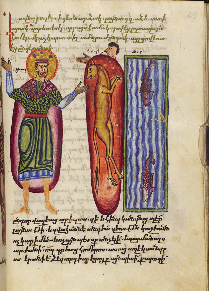 In the context of early medieval translated literature (which included the Bible and, mostly, ecclesiastical literature) this half-historical and half-fiction work was unique. The purpose of the translation was probably to encourage Armenians with the military exploits of Alexander the Great, since in those years Armenia was engaged in a defensive war against the powerful Sassanid Empire [Vardanyan 2015]. Later it became one of the most favorite books in Armenia, several poets wrote short poems and inserted them into the text. Miniaturists richly illustrated the text; this is one of the most illuminated works in medieval Armenian manuscripts [Kouymjian 2019: 153–157].