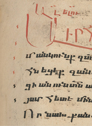The oldest copy of Nersēs Lambronatsʻi’s Commentary on the Book of Psalms of David is kept in the St. Lazzaro Library in Venice [Chemchemean 1996: 871–876]. For our research, we used manuscript 1526 from Matenadaran, Yerevan (1293–1294, place: Yovhannavank‘, scribe: Priest Yerets‘, comissioner: Hamazasp Mamikonean, Bishop of Yovhannavank‘, material: paper, dimensions: 50 × 33.5cm, 907 p.)4. At times, it has been compared with MS M3796.